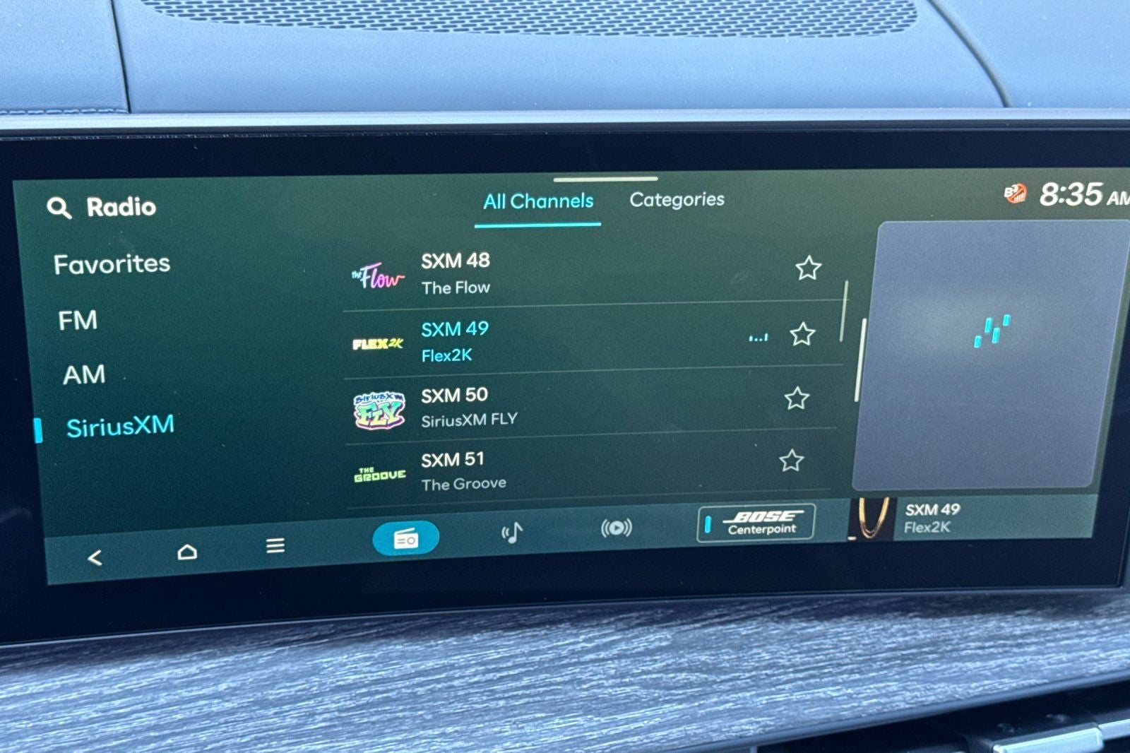 - Radio: AM/FM/HD Bose Premium Audio System -inc: 12 speakers including subwoofer, external amplifier, 12.3" wide touchscreen, wireless Apple CarPlay and Android Auto, Bluetooth® hands-free w/wireless audio streaming, dynamic voice recognition, USB connectivity, SiriusXM, wifi hotspot, Blue Link connected car system, navigation system including traffic flow w/incident data via HD Radio (HERE), OTA updates and rear seat quiet mode