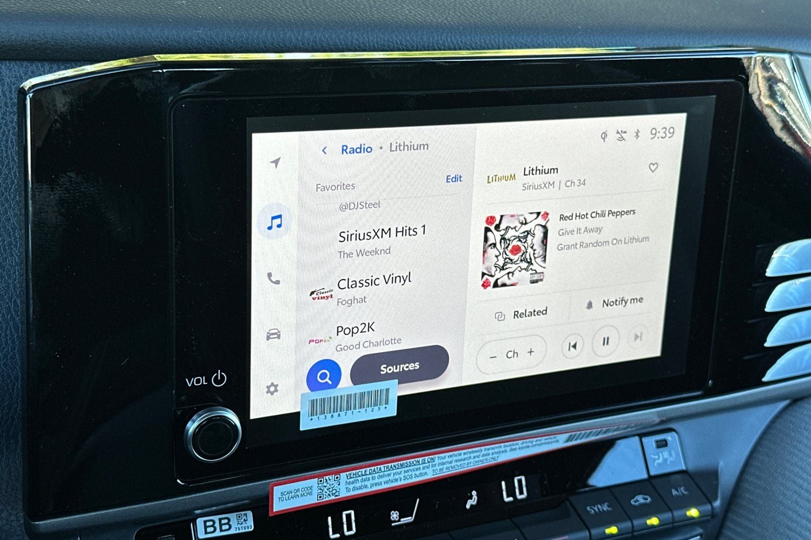 - AM/FM radio: SiriusXM