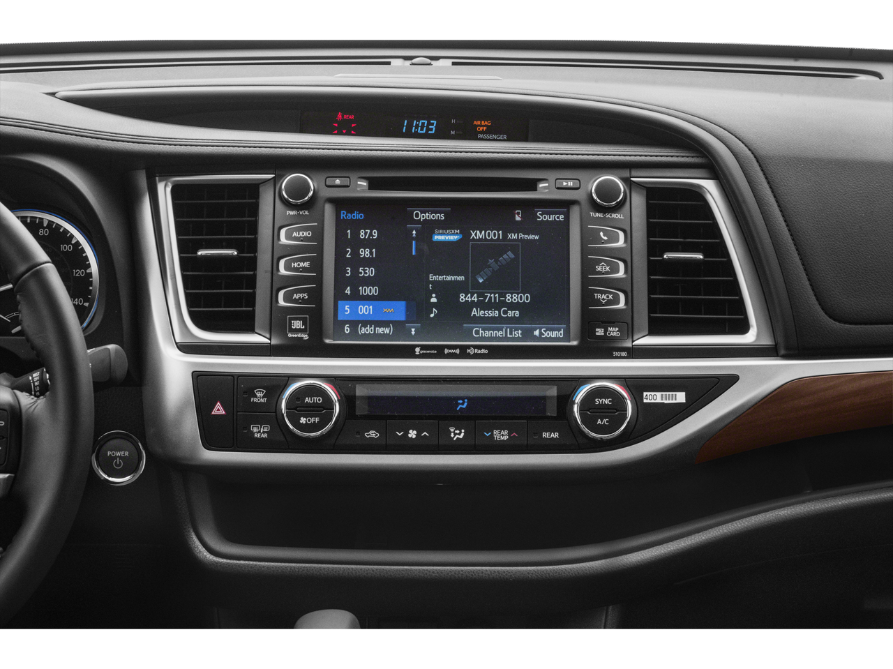 - Radio: Entune Audio -inc: the Entune Multimedia Bundle (6.1" high resolution touch-screen display, AM/FM CD player, MP3/WMA playback capability, 6 speakers, auxiliary audio jack, USB 2.0 port w/iPod connectivity and control, advanced voice recognition, hands-free phone capability, phone book access and music streaming via Bluetooth® wireless technology), Siri Eyes Free, Intelligent Touch controls and integrated backup camera display w/projected path