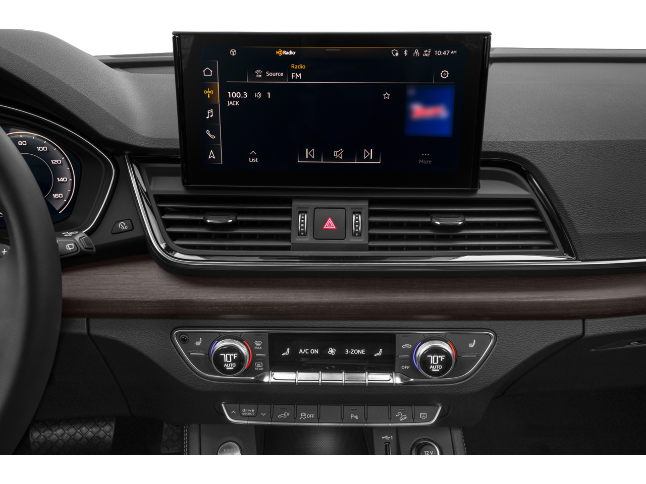 - Radio: Audi Sound System -inc: Audi smartphone interface w/wireless Apple CarPlay, preparation for mobile phone (Bluetooth®), MMI touch display w/10.1" center screen and 2 rear USB charge ports